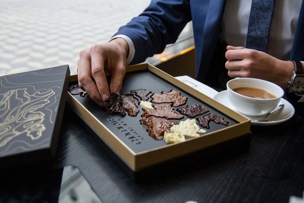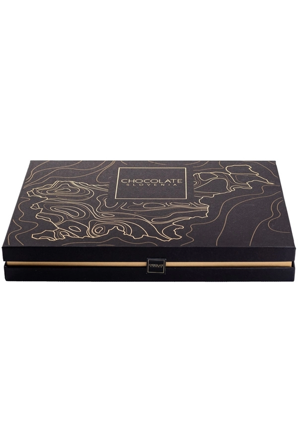 Čokoláda Slovinsko přesvědčí svým vynikajícím vzhledem a chutí i ty nejnáročnější chuťové buňky. Ručně vyráběná čokoláda ve tvaru Slovinska je jedinečná díky pečlivě vybraným přísadám a reliéfnímu tvaru a zabalená v elegantním černém obalu se zlatými akcenty poskytuje prestižní vzhled, který zapůsobí.
