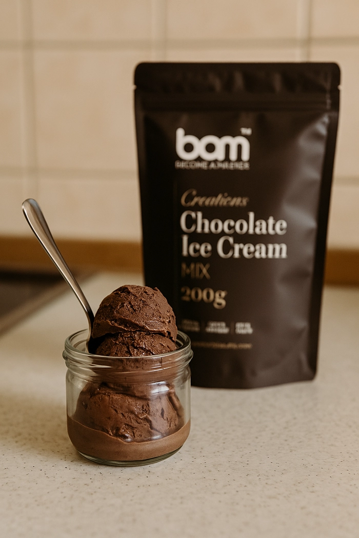 BAM Chocolate Ice Cream Mix je součástí prémiové produktové řady BAM by Mojačokolada.si, vytvořené pro všechny, kteří si chtějí doma připravit dezerty, které vypadají a chutnají lahodně - bez složitých postupů.