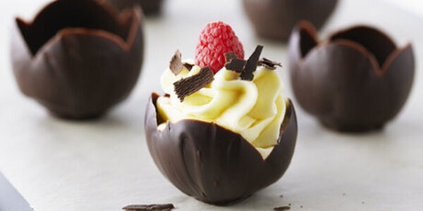 1 Připravte si štětec a papírové košíčky. Štětec namočte do čokolády a na vnitřní stranu každého papírového košíčku naneste silnou vrstvu čokolády. Čokoládu nechte zcela vychladnout při pokojové teplotě.