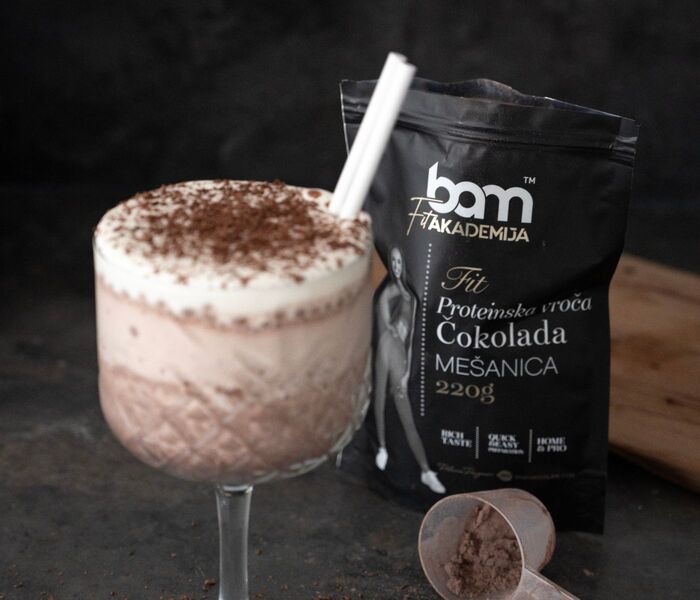 V mixéru smíchejte led, mléko a horkou čokoládu BAM Protein. Mixujte do hladka.