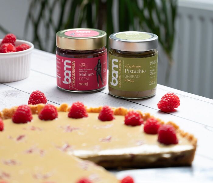 @bamchocolate.com Looking for a dessert to impress? ?Presenting the pistachio-raspberry tart. Divine pistachio cream, fresh raspberries and a crispy cookie base - no baking required. BAM raspberry jam with no added sugar brings a pleasant tartness that perfectly complements the sweetness. Quick, easy and perfect for all occasions! ? INGREDIENTS: - 200 g of ground biscuits - 100 g butter - 80 ml of milk - 400 ml cream - 200 g BAM pistachio spread - 20 g cornstarch - BAM raspberry jam without added sugar - Fresh raspberries (for garnish) PREPARATION: 1. In a large bowl, gently combine the ground biscuits, melted butter and milk and stir until smooth. 2. Line the base of the baking tray with the prepared biscuit mixture and place in the fridge to firmly bind. 3. For the pistachio cream, combine the cream, BAM pistachio spread and cornstarch in a small saucepan. Heat slowly on the stove, stirring constantly until you reach a thick, creamy texture. 4. Spread the BAM raspberry jam evenly over the biscuit base without added sugar. 5. Pour over the warm pistachio cream and allow to cool slightly. 6. Finally, decorate the cake with fresh raspberries and place in the fridge for a few hours to allow the cream to set completely. Enjoy the wonderful combination of flavours this unique cake has to offer. ✨ #pistachiocake #raspberry #bam #bamchocolate ♬ original sound - BAM (Become A Master)