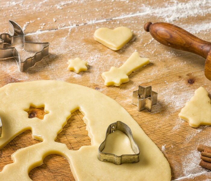 Těsto rozválejte válečkem na požadovanou tloušťku. Doporučujeme je rozválet tenčí, protože díky tomu jsou sušenky opravdu křehké. Sušenky položte na plech vyložený pečicím papírem a nechte mezi nimi dostatek místa.